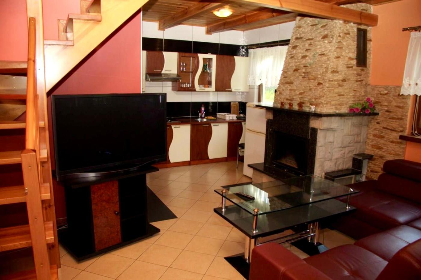 Dom z 2 sypialniami. This holiday home features a pool with a view and a fireplace. Boasting a private entrance, this holiday home also includes 1 living room, 2 separate bedrooms and 1 bathroom with a shower. Guests will find a stovetop, a refrigerator, kitchenware and an electric kettle in the well-equipped kitchen. The holiday home also features a barbecue. Featuring a terrace with garden views, this holiday home also offers a washing machine and a flat-screen TV with streaming services. The unit has 6 beds. Dom wakacyjny - 7 osobowy.