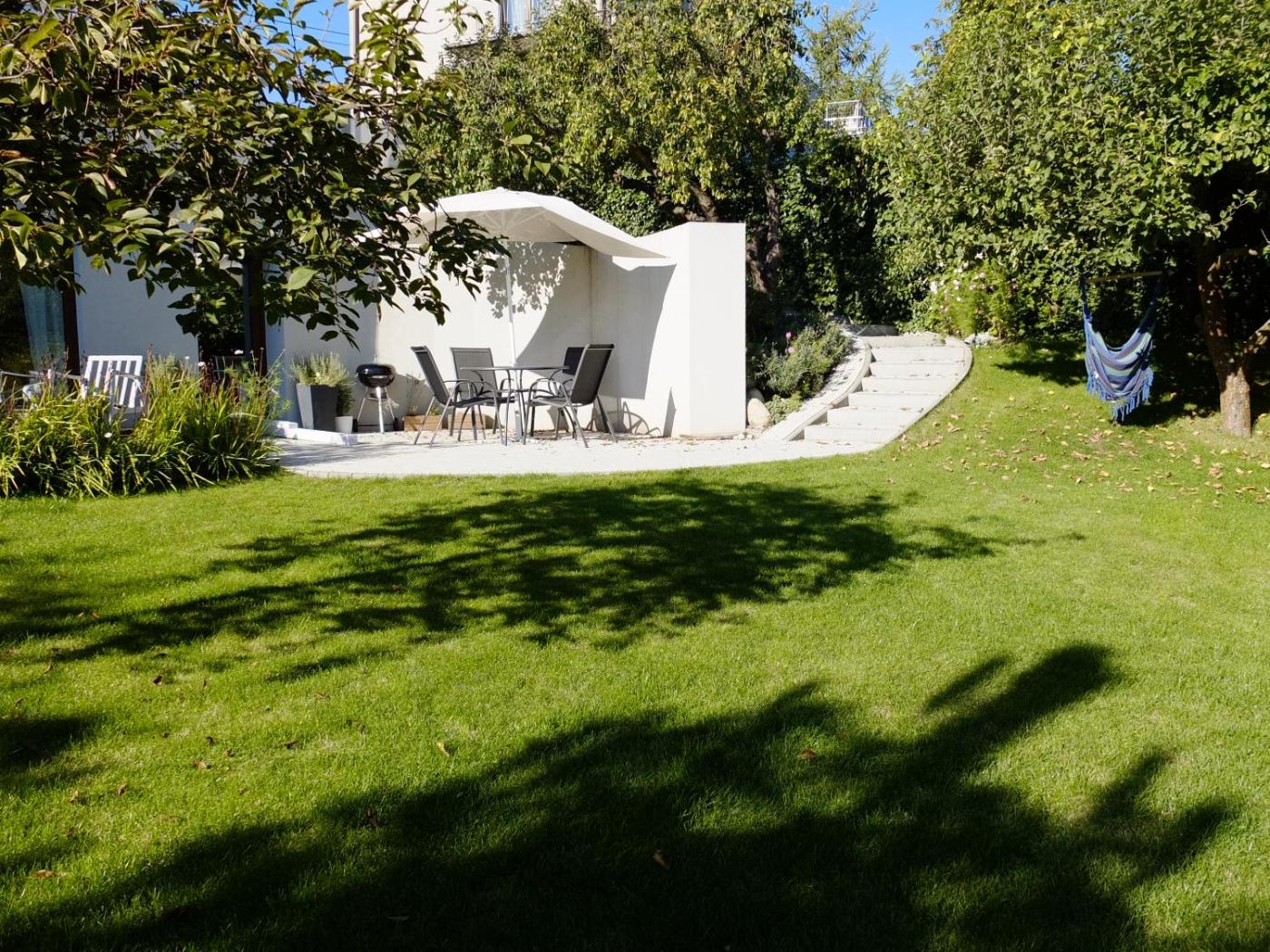 Apartament z 1 sypialnią i ogrodem. Boasting a private entrance, this apartment includes 1 living room, 1 separate bedroom and 1 bathroom with a walk-in shower and a hairdryer. Guests will find a stovetop, a refrigerator, a dishwasher and kitchenware in the fully equipped kitchenette. The apartment also features a barbecue. The apartment offers a flat-screen TV with satellite channels, a washing machine, soundproof walls, a tea and coffee maker as well as garden views. The unit has 2 beds. Apartament - 3 osobowy. Powierzchnia pokoju ok.: 45 mkw. ;