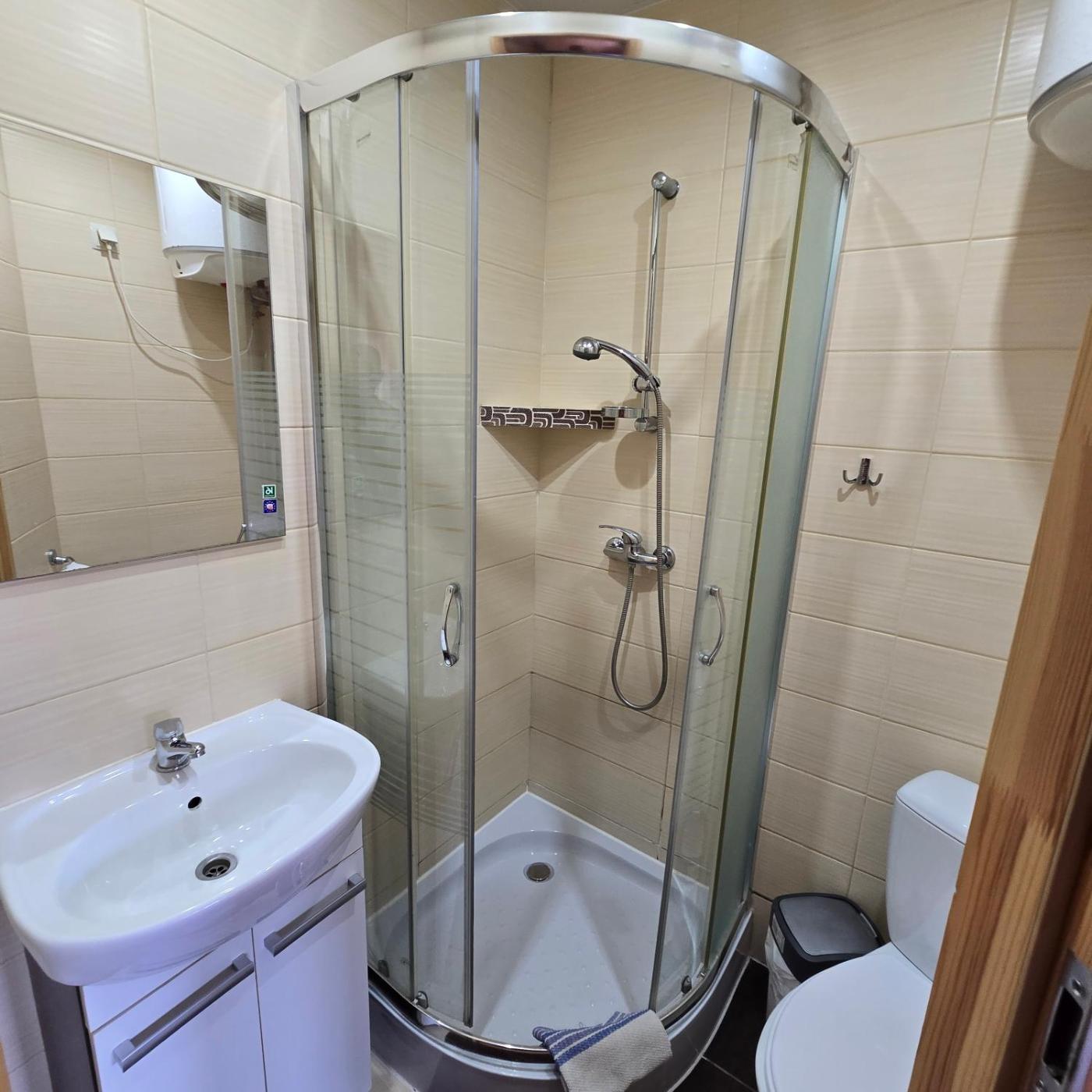 Pokój dwuosobowy z prywatną łazienką. The double room offers a private entrance, a wardrobe, a terrace with garden views as well as a private bathroom featuring a shower. The unit offers 1 bed. Pokój Dwuosobowy - 2 osobowy. Powierzchnia pokoju ok.: 12 mkw. ;