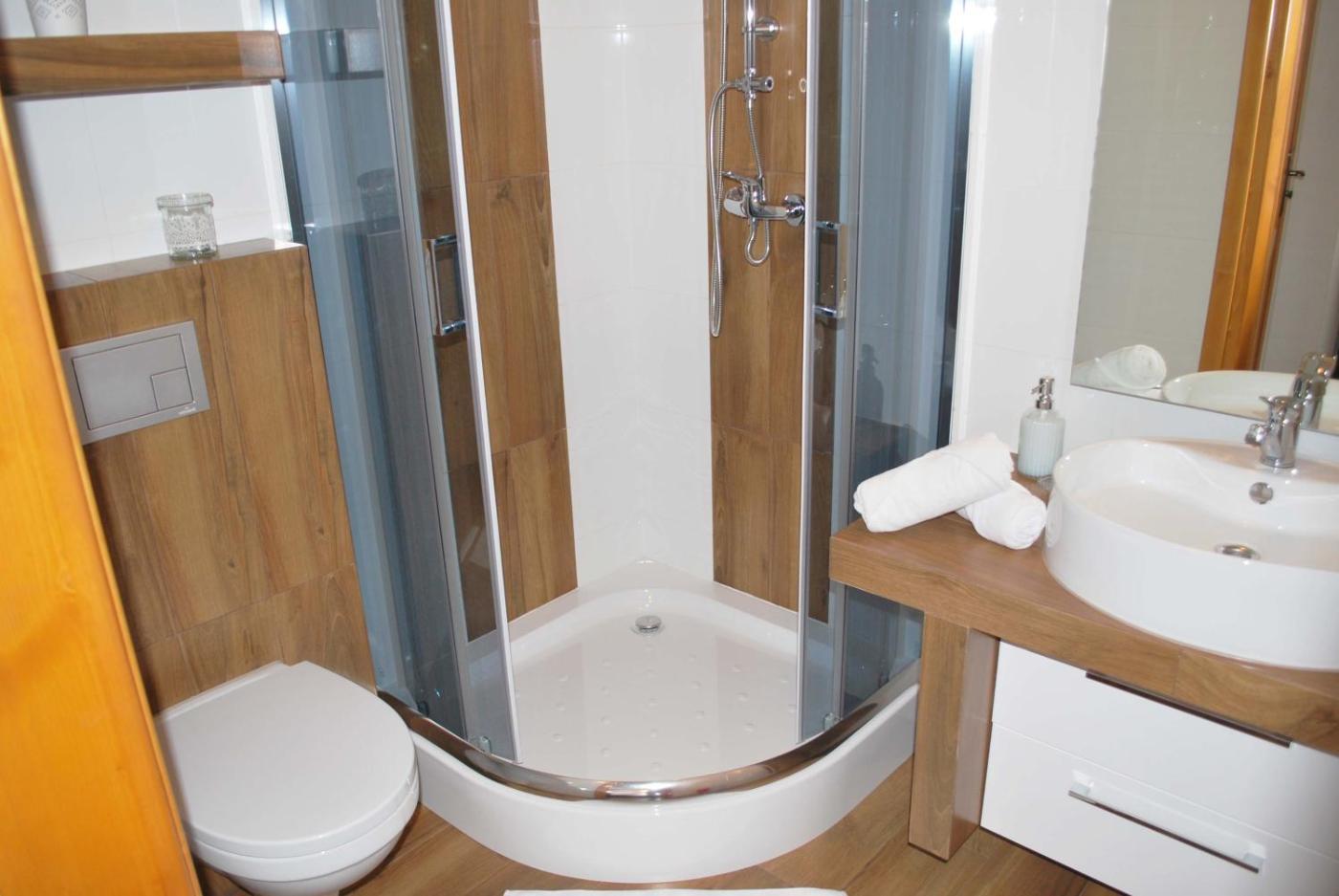 Pokój Czteroosobowy. The quadruple room includes a private bathroom equipped with a shower and a hairdryer. In the well-equipped kitchenette, guests will find a stovetop, a refrigerator, kitchenware and a microwave. The quadruple room provides a flat-screen TV with cable channels, a tea and coffee maker, a dining area, a wardrobe as well as garden views. The unit offers 3 beds. Pokój Czteroosobowy - 4 osobowy. Powierzchnia pokoju ok.: 30 mkw.