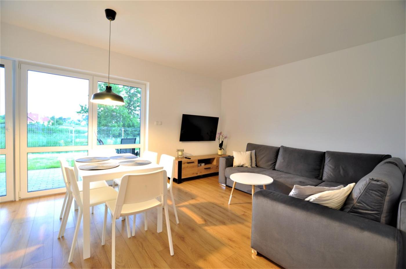 Apartament z 2 sypialniami. Guests will find a stovetop, a refrigerator, a dishwasher and kitchenware in the fully equipped kitchenette. The apartment also includes a barbecue. The apartment features a washing machine, a private entrance, a tea and coffee maker as well as a terrace with garden views. The unit has 3 beds. Apartament - 6 osobowy. Powierzchnia pokoju ok.: 50 mkw.
