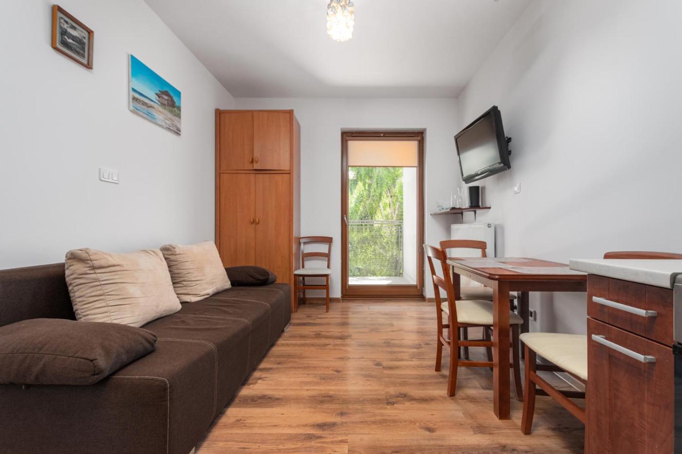 Apartament z 1 sypialnią i balkonem. This apartment consists of 1 living room, 1 separate bedroom and 1 bathroom with a bath and a hairdryer. The fully equipped kitchen features a stovetop, a refrigerator, kitchenware and an oven. Featuring a balcony with garden views, this apartment also provides a washing machine and a flat-screen TV. The unit offers 2 beds. Apartament - 4 osobowy. Powierzchnia pokoju ok.: 35 mkw.